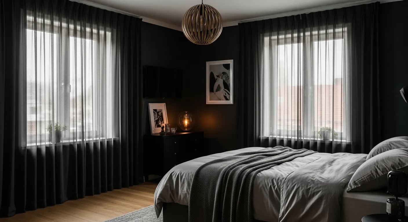 Sheer black curtains are a subtle yet powerful way to control light while keeping your bedroom soft and inviting. Instead of completely blocking sunlight, they filter it into a gentle glow that feels calming and balanced. I’ve noticed that this works especially well in darker rooms where too much light can feel harsh. The sheer fabric keeps the space from feeling closed off, which helps maintain a comfortable and breathable atmosphere throughout the day.