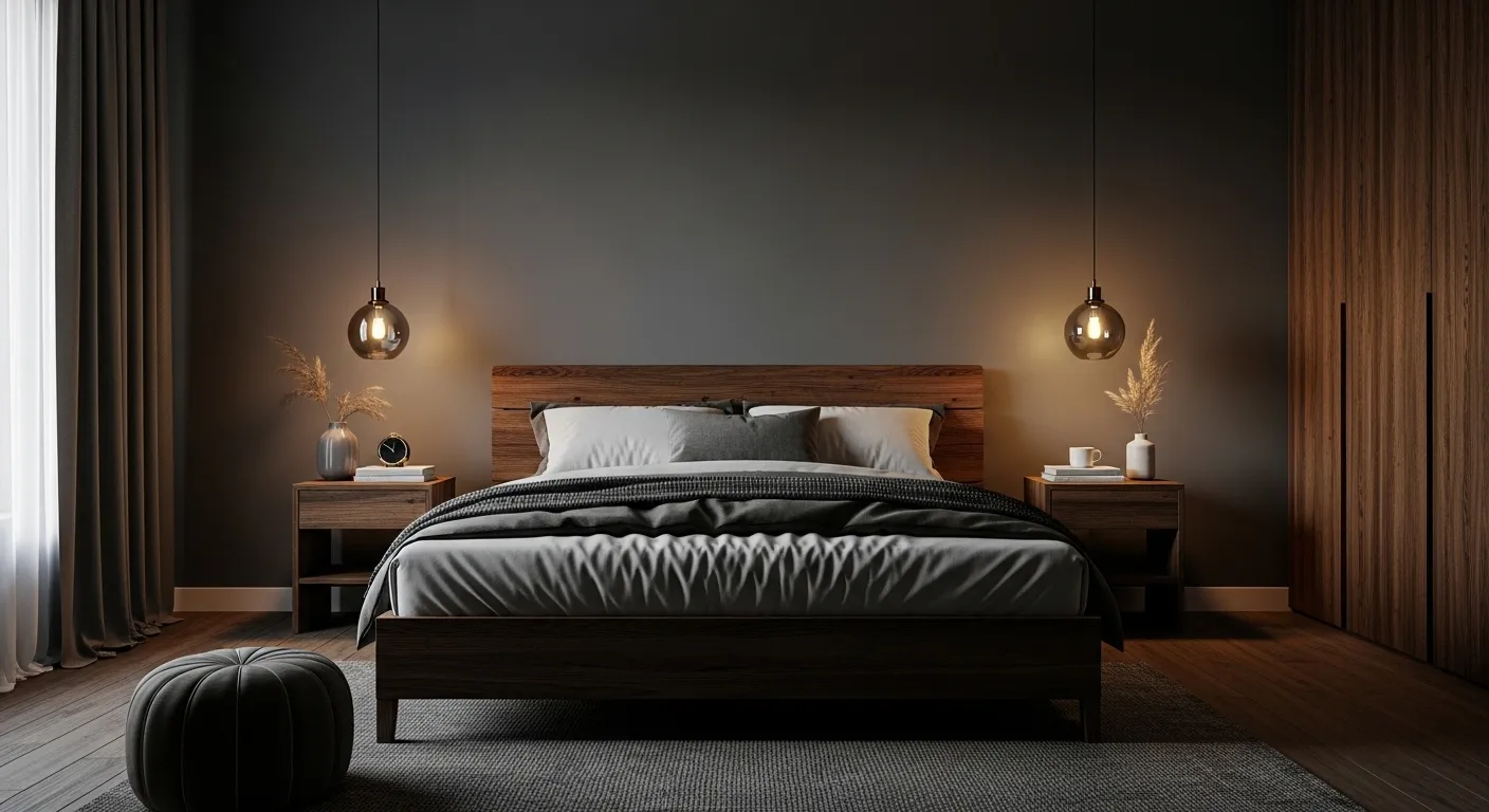 Dark wood elements bring a natural warmth that balances the deeper tones often used in moody bedroom designs. The rich texture of wood helps soften the overall look, making the space feel more inviting instead of too heavy. I’ve noticed that even small additions like a wooden side table or bed frame can make a noticeable difference. These elements create a grounded feeling that makes the room more comfortable and visually balanced.