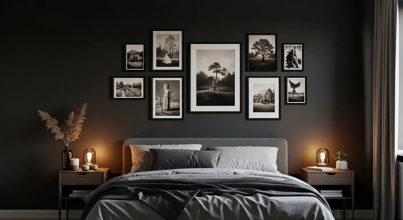 A moody gallery wall can completely change how your bedroom feels by adding personality and visual interest. Instead of leaving walls plain, curated artwork creates a layered and intentional look that feels more lived-in. I’ve noticed that darker frames and vintage-style prints work especially well because they blend seamlessly into deeper color palettes. This helps maintain the cozy atmosphere while still giving the eye something interesting to focus on.