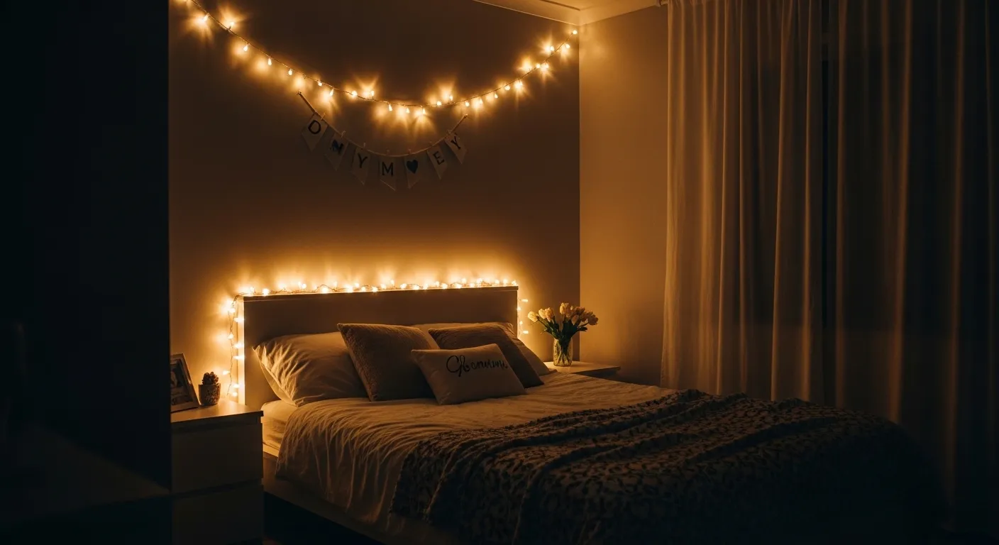 What makes this idea so popular is how flexible and budget-friendly it is. You can adjust the placement depending on your room layout or personal style. In my experience, warm-toned lights work best because they enhance the cozy feel without being too bright. This small addition can completely change the mood of your bedroom, making it feel more peaceful, intimate, and visually appealing at the same time.