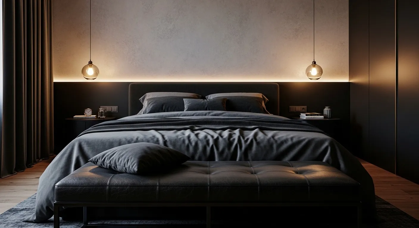 What makes this idea stand out is how it blends strength with comfort. Leather elements add a grounded, mature feel while still fitting into a dark romantic bedroom ideas setting when paired with soft lighting and textiles. In my experience, even one leather piece can make the room feel more complete and intentional. This balance helps create a dark romantic bedroom ideas that feels stylish, layered, and comfortable without becoming overly decorative or cluttered.