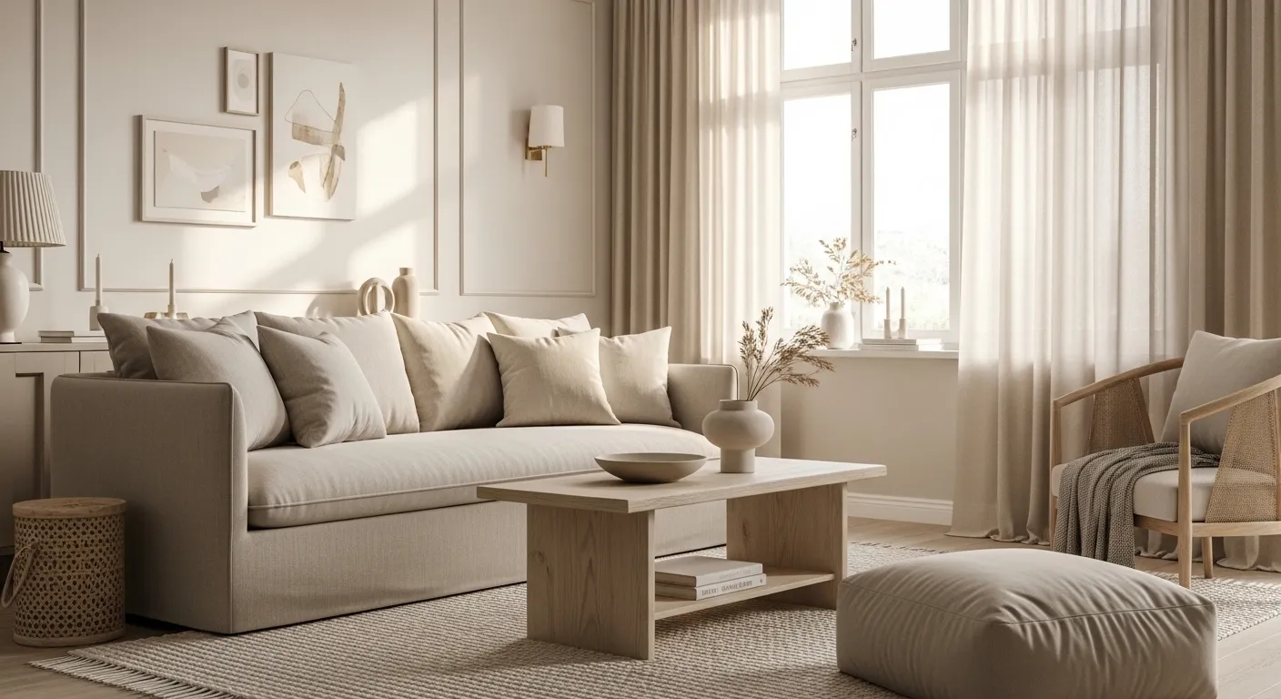 A soft beige palette instantly creates a calm and welcoming atmosphere that feels both elegant and effortless. This approach works beautifully because it keeps the space visually light while still feeling warm and lived-in. In my experience, lighter tones help reflect natural light, making even compact rooms feel more open and breathable. Instead of overwhelming the eye, the room feels balanced and relaxed, which is exactly what most people want from a comfortable and stylish living space.