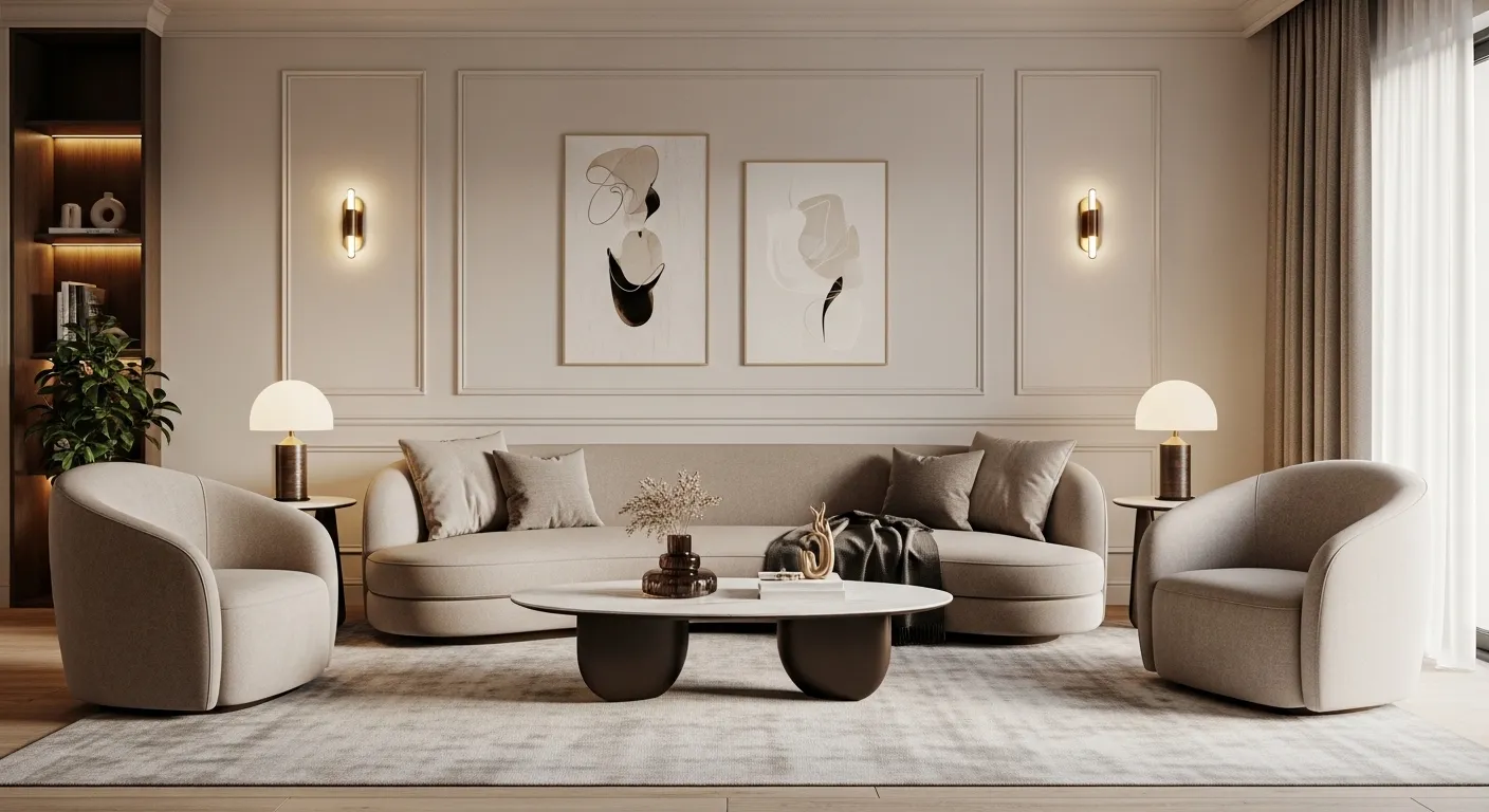 What makes this idea stand out is how it blends comfort with style so effortlessly. Curves bring a subtle modern touch while still fitting beautifully into classic-inspired interiors. I’ve seen this work especially well in spaces that feel too formal or stiff. It enhances a modern classic living room by adding softness and flow, creating a space that feels both elegant and easy to live in.