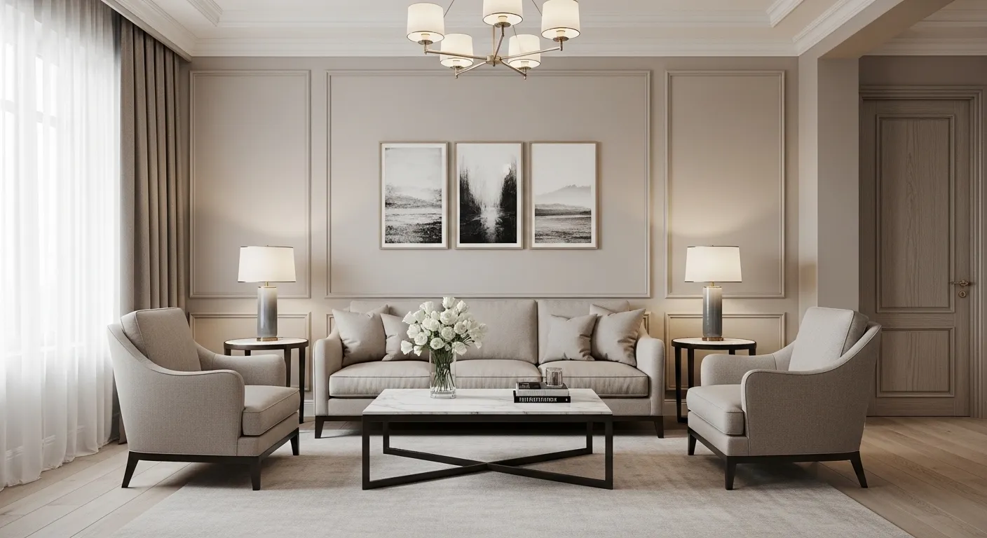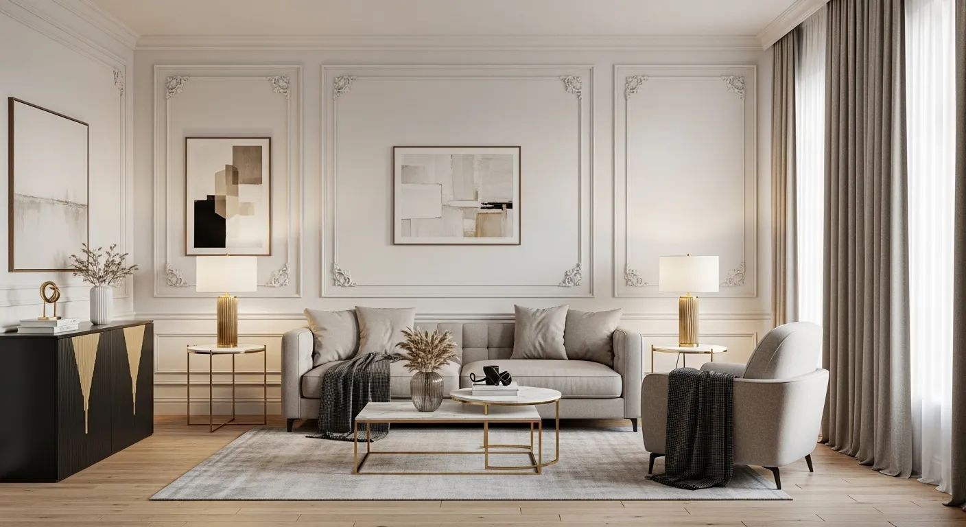 The beauty of this idea is that it works in almost any space, whether large or small. You don’t need heavy detailing to achieve the effect, even minimal molding can make a noticeable difference. That’s why many designers recommend it for creating that balanced, modern-meets-classic look. It quietly supports the aesthetic of a modern classic living room by adding character while still keeping the overall design calm and cohesive.