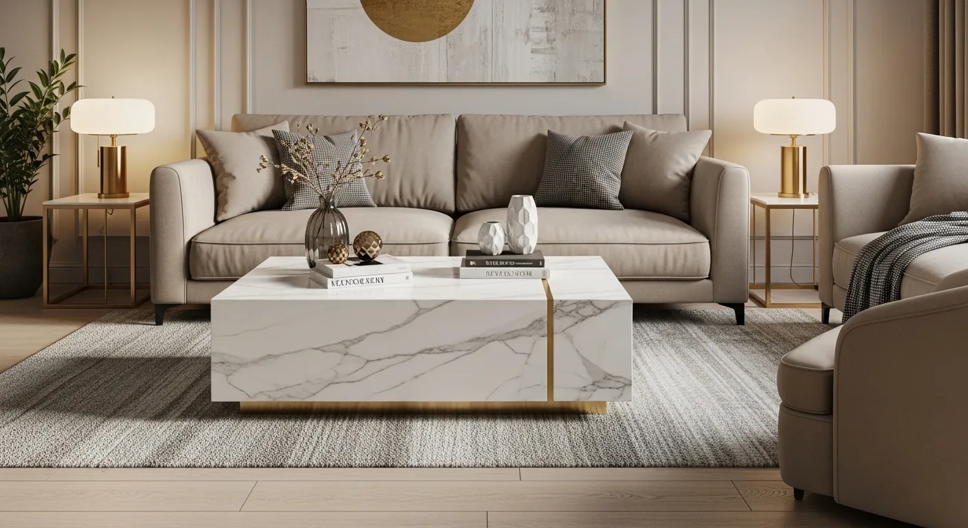 A marble coffee table instantly becomes the centerpiece of the room without feeling too bold or overwhelming. It adds a natural texture that feels rich yet subtle, making the space look more refined and thoughtfully designed. In my experience, even a small marble surface can elevate the entire setup because of its natural patterns and smooth finish. It brings in that perfect mix of luxury and simplicity that works beautifully in balanced interiors.