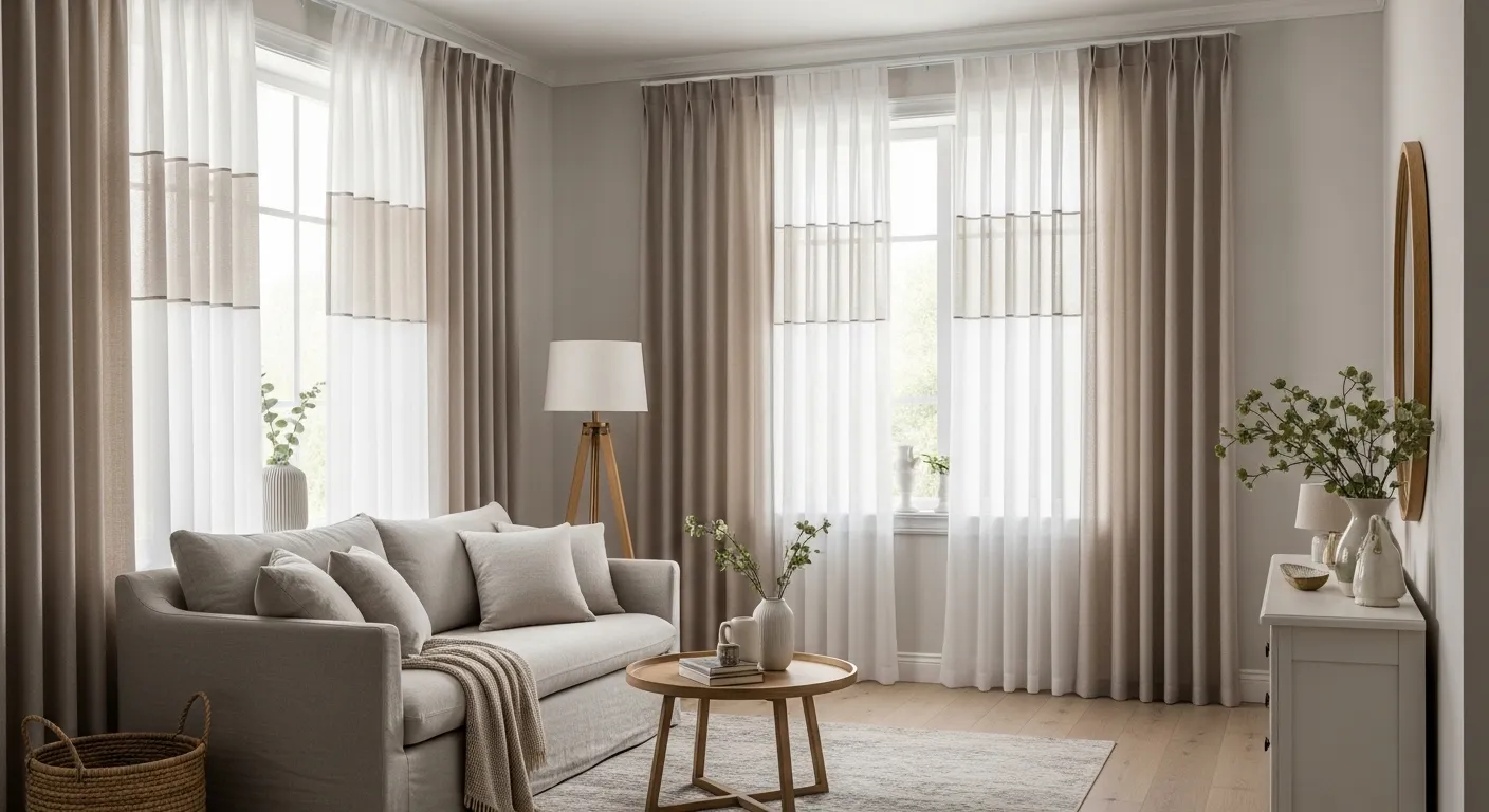 Layered curtains can completely change how light moves through your space, making it feel softer and more inviting. Sheer panels allow daylight to filter in gently, while thicker drapes add depth and structure to the windows. In my experience, this combination instantly makes a room feel more styled and complete without adding clutter. It creates a calm atmosphere where the light feels diffused rather than harsh, which is perfect for everyday living.