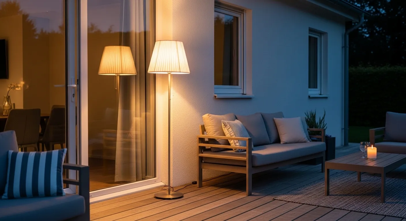 Outdoor spaces feel more complete when they mirror indoor comfort. Floor lamps designed for outdoor use bring that same cozy, lived-in feeling to patios and decks. Instead of relying only on overhead lighting, this idea adds a human-scale light source that feels more personal. I’ve seen this work especially well in lounge areas where people gather to relax. The warm glow creates a calm atmosphere, making the space feel more like an extension of your living room.
