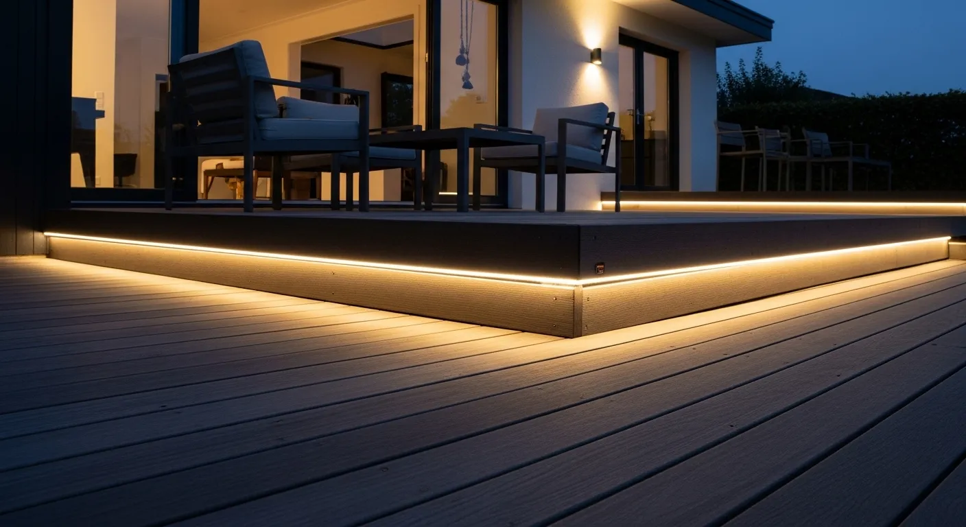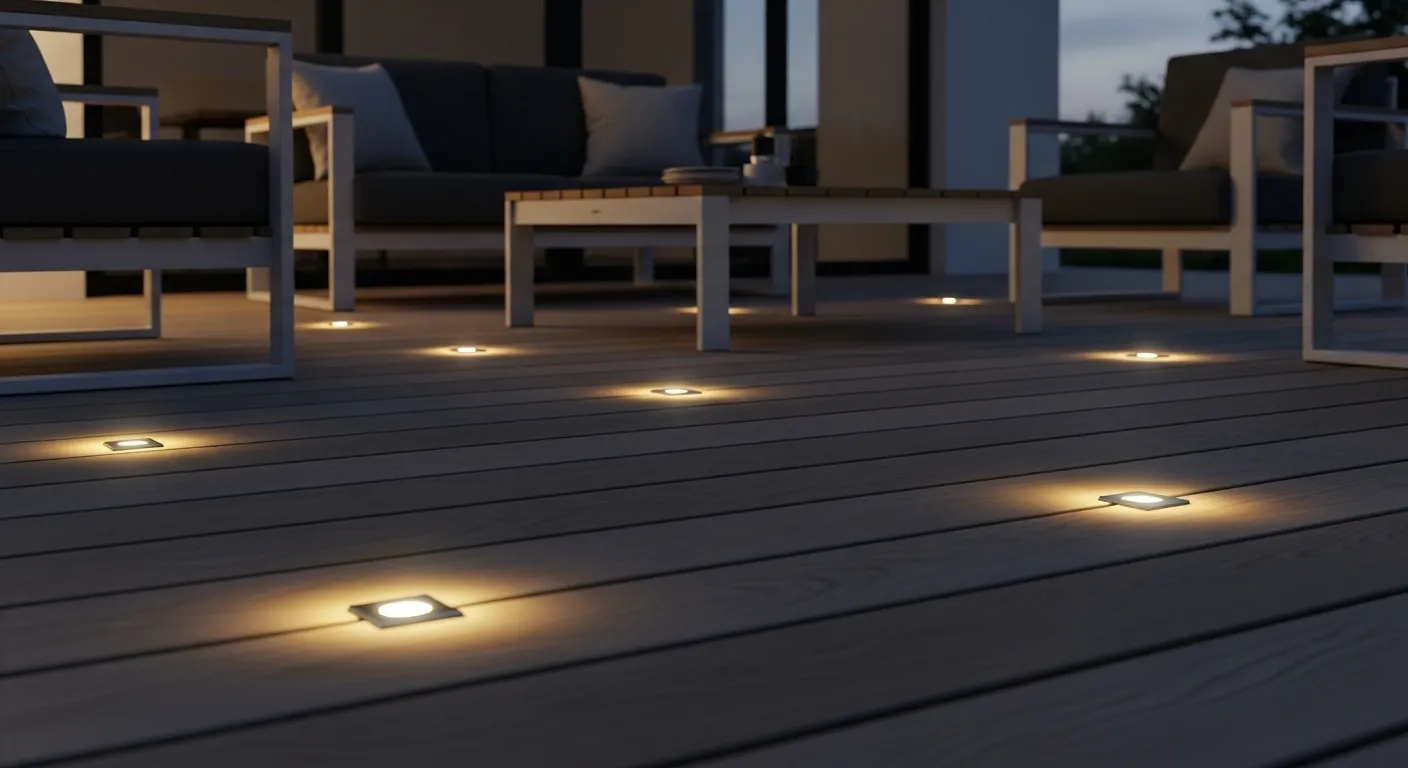 Sometimes the most effective lighting is the least visible. Recessed deck lights sit flush within the surface, creating a clean and modern look that doesn’t interrupt the design. This is one of those modern outdoor lighting ideas that feels subtle but delivers a polished finish. I’ve seen this work especially well in contemporary homes where minimalism is key. The soft glow adds just enough light to guide movement while keeping the overall atmosphere calm and uncluttered.