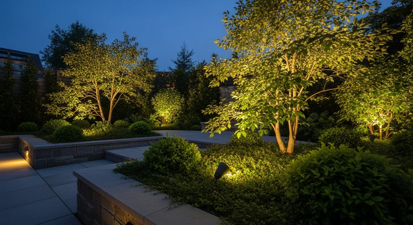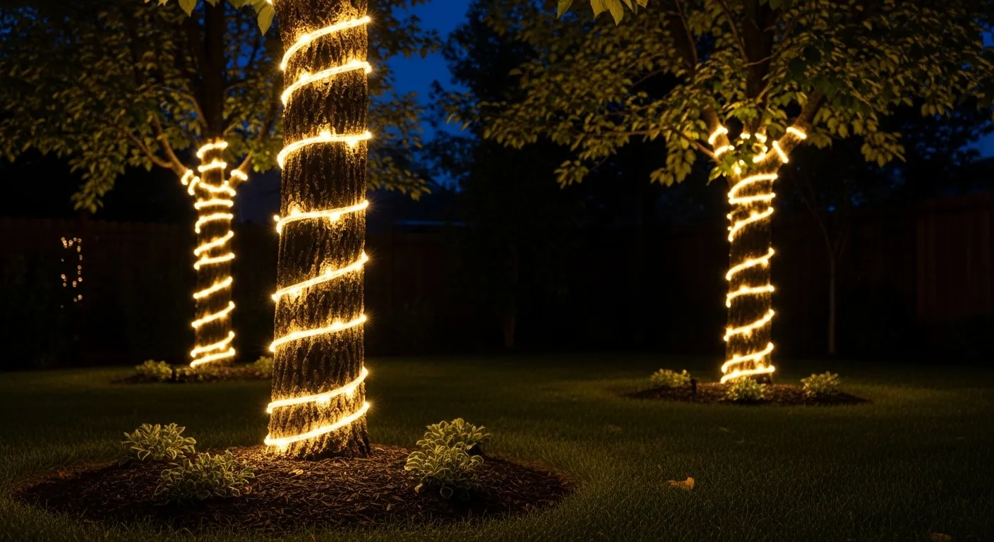 This approach works because it enhances what’s already there instead of adding something new. In my experience, using warm-toned lights keeps the effect soft and natural rather than overly bright. It also creates beautiful shadows that shift gently with the surroundings. Over time, these glowing trees become a signature feature of the space, adding both charm and depth while making nighttime outdoor areas feel more alive and visually engaging.