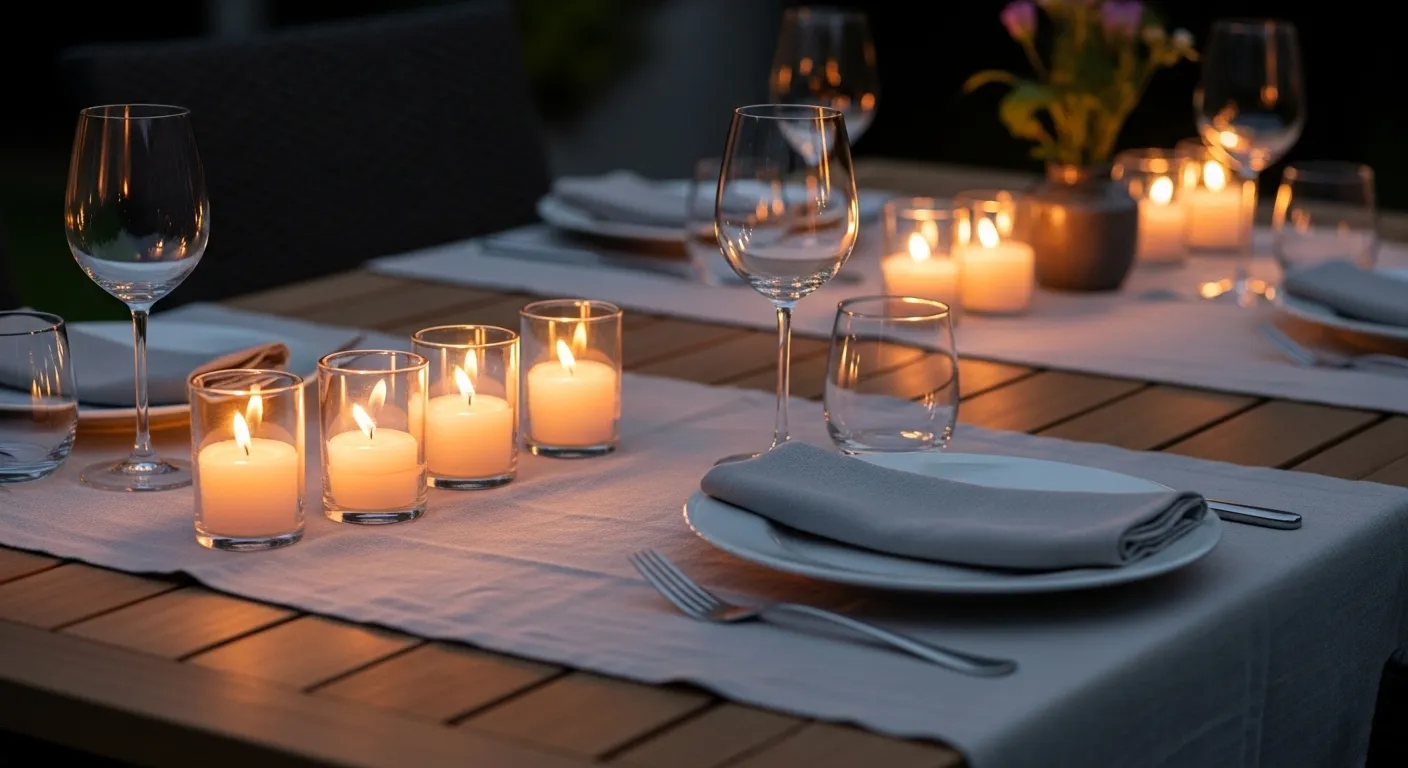 A simple table can feel instantly more inviting with the addition of candlelight. Candle table lighting creates a warm, flickering glow that feels intimate and calming. I’ve seen this work beautifully for both casual dinners and special occasions, where the goal is to create a relaxed mood rather than bright illumination. The gentle light softens the entire setting, making conversations feel more personal and the overall experience more memorable.