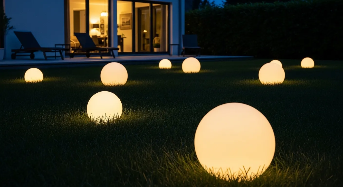 A few glowing orbs can completely transform the mood of your outdoor space. Floating orb lights create a soft, diffused glow that feels calm, modern, and slightly magical. I’ve noticed they work especially well in areas where you want a visual statement without adding clutter. Whether placed in water or across a lawn, they reflect light beautifully and draw attention in a subtle, elegant way that feels both relaxing and visually striking.