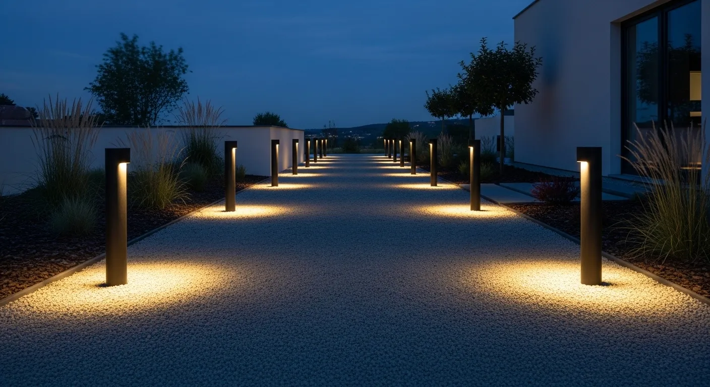 Clean lines and subtle lighting can make a strong statement outdoors. Minimalist bollard lights offer a structured and modern way to illuminate pathways without overwhelming the design. I’ve seen this work especially well in contemporary homes where simplicity is key. The soft downward glow keeps the light focused while maintaining a calm and balanced look, making the space feel organized and easy to navigate at night.