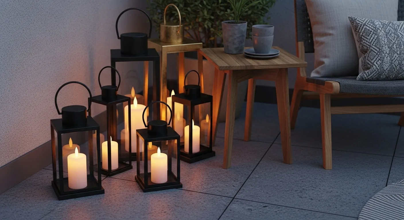Solar lights, battery-operated lanterns, and LED candles are great no-wiring options. I’ve noticed solar pathway lights are especially easy and effective for beginners.