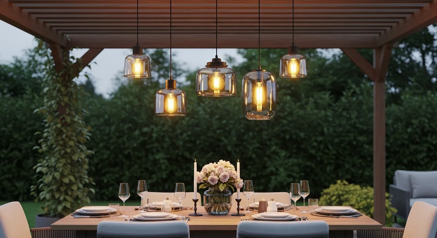 This setup works beautifully because it visually anchors the dining area. In my experience, adding pendant lights above a table makes the space feel complete and thoughtfully designed. It also helps separate the dining zone from the rest of the yard without using physical dividers. Choosing warm-toned bulbs keeps the atmosphere inviting rather than harsh. Over time, this lighting becomes the highlight of the space, blending functionality with a modern aesthetic that feels both comfortable and refined.